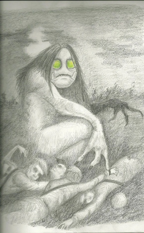 Derived from Gullah culture, the Boo Hag is a red witch that steals the skin of its victims, wearing them like clothes to blend in with the living. She is said to survive on the life force of her prey, draining them of their vitality in their sleep.