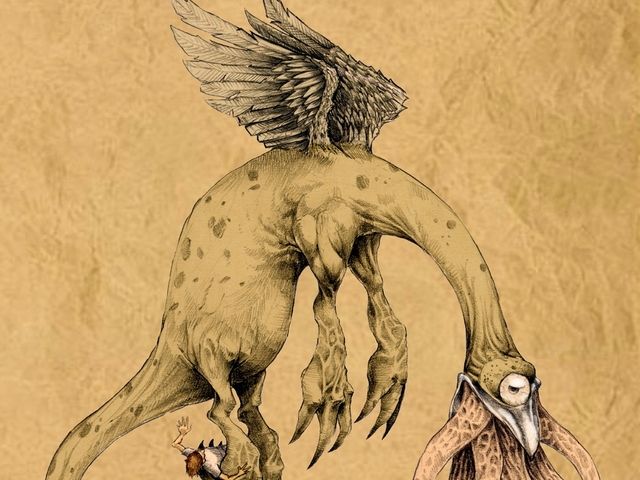 - a legendary dragon-like cryptid said to haunt the hills bordering Washington D.C. & Maryland. It is traditionally described as a part-bird, part-reptile beast with a metallic beak, sharp teeth, leathery wings, and occasionally tentacles or a single eye in the center of its forehead.