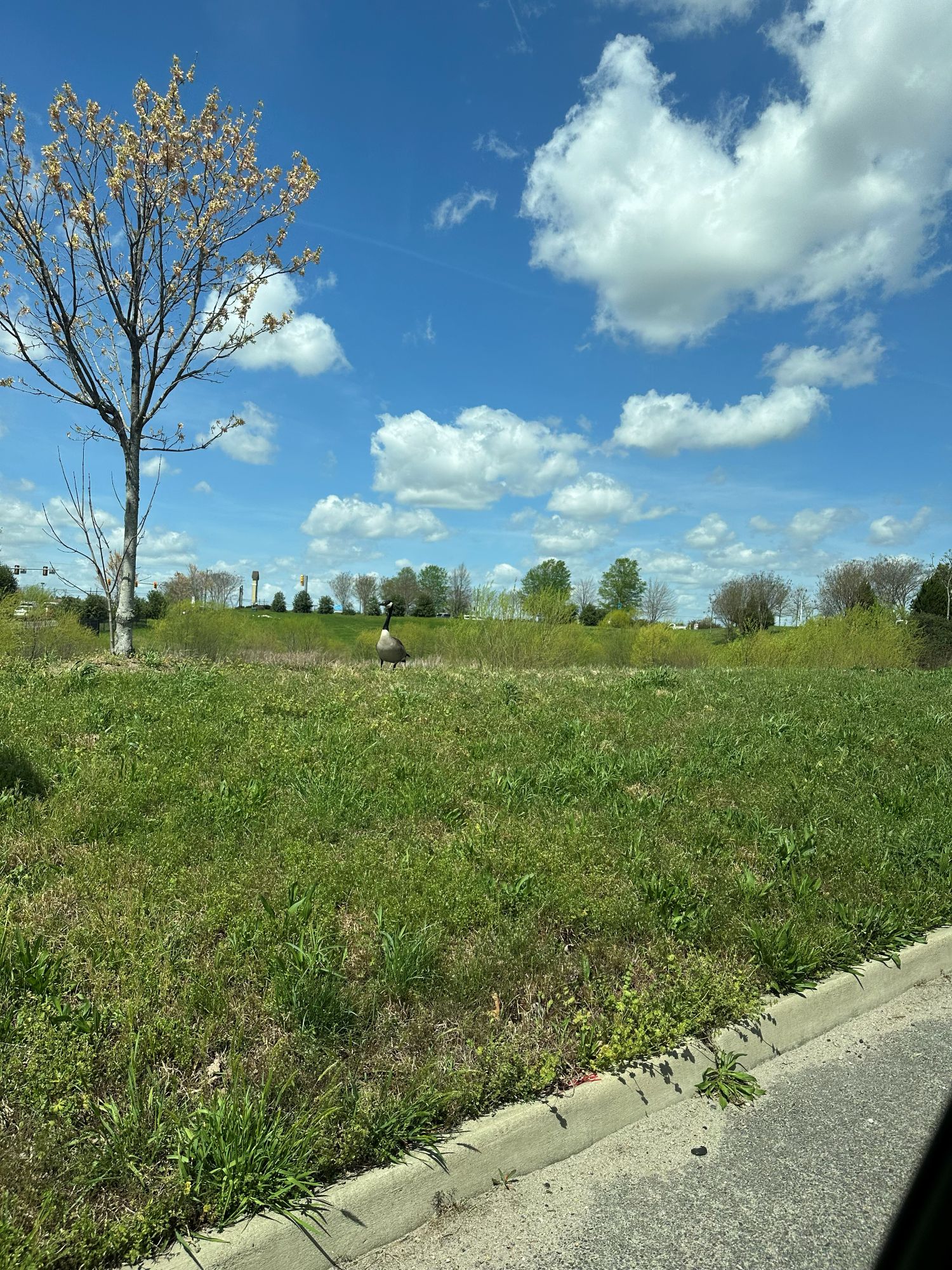 - Canadian Goose sitting on a knoll of grass